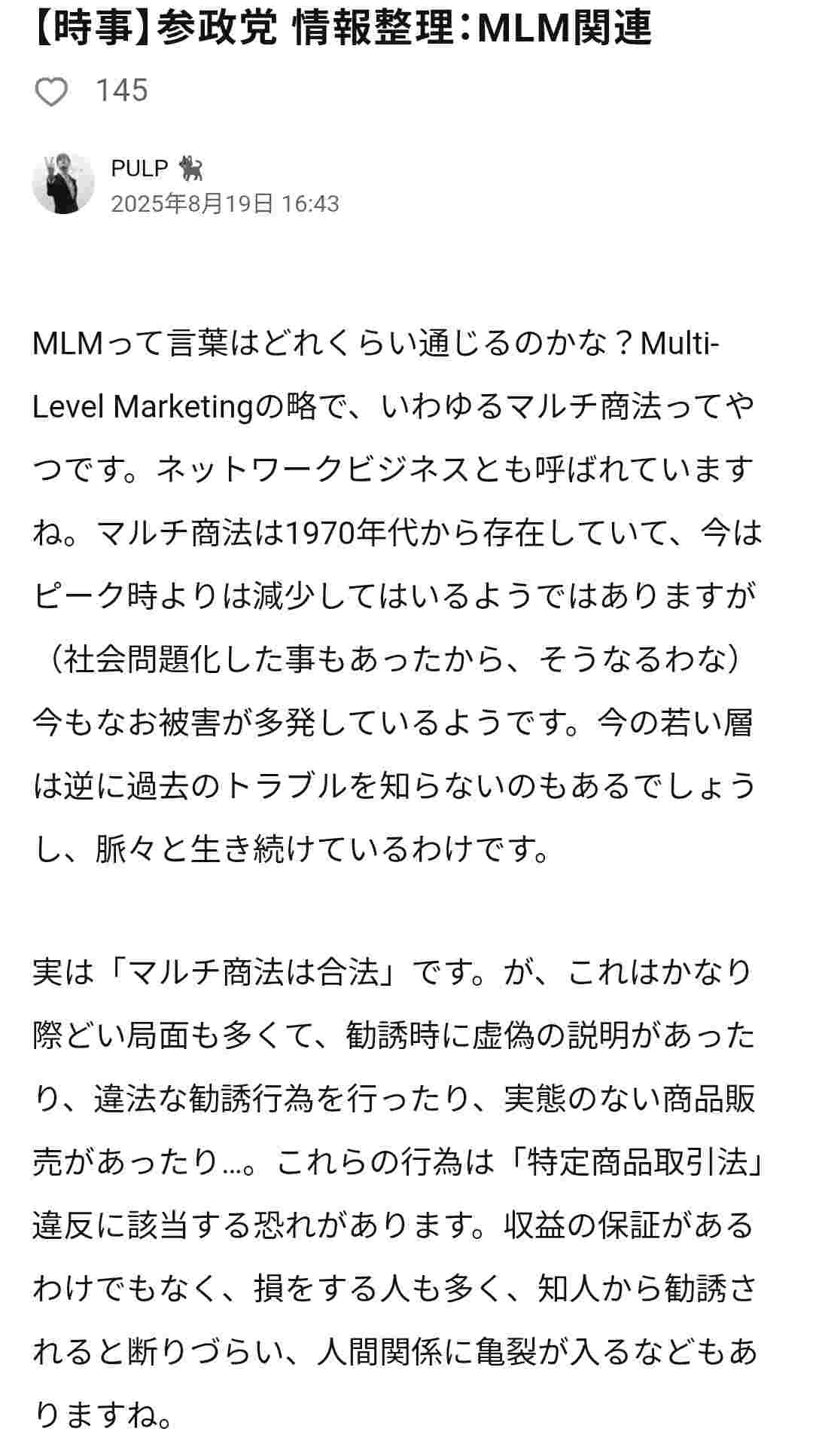 - 【時事】参政党 情報整理:MLM関連|PULP 🐈⬛