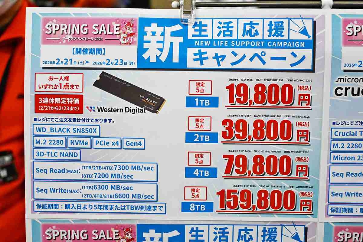 PCIe 4.0対応SSD「WD Black SN850X」が大幅特価、最大59%安に [2月後半のSSD価格]