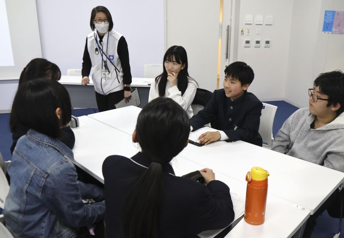 デジタル機器から距離を置く「デジタルデトックス」を広めようと地元の中学生が企画。スマホを手放し、心身の健康を取り戻す方法を語り合った。座談会には中学生16人が参加。「スマホを手放せない理由は?」などと書かれた質問カードなどを使って、