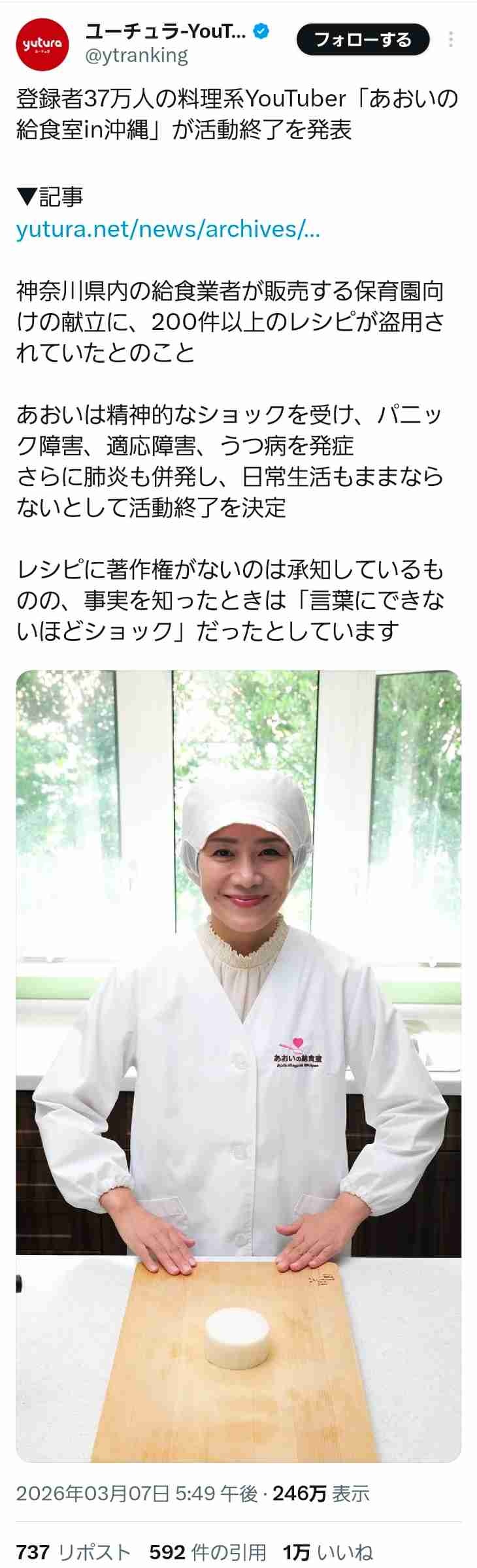 料理系YouTuber、給食業者にレシピをパクられボロボロに…