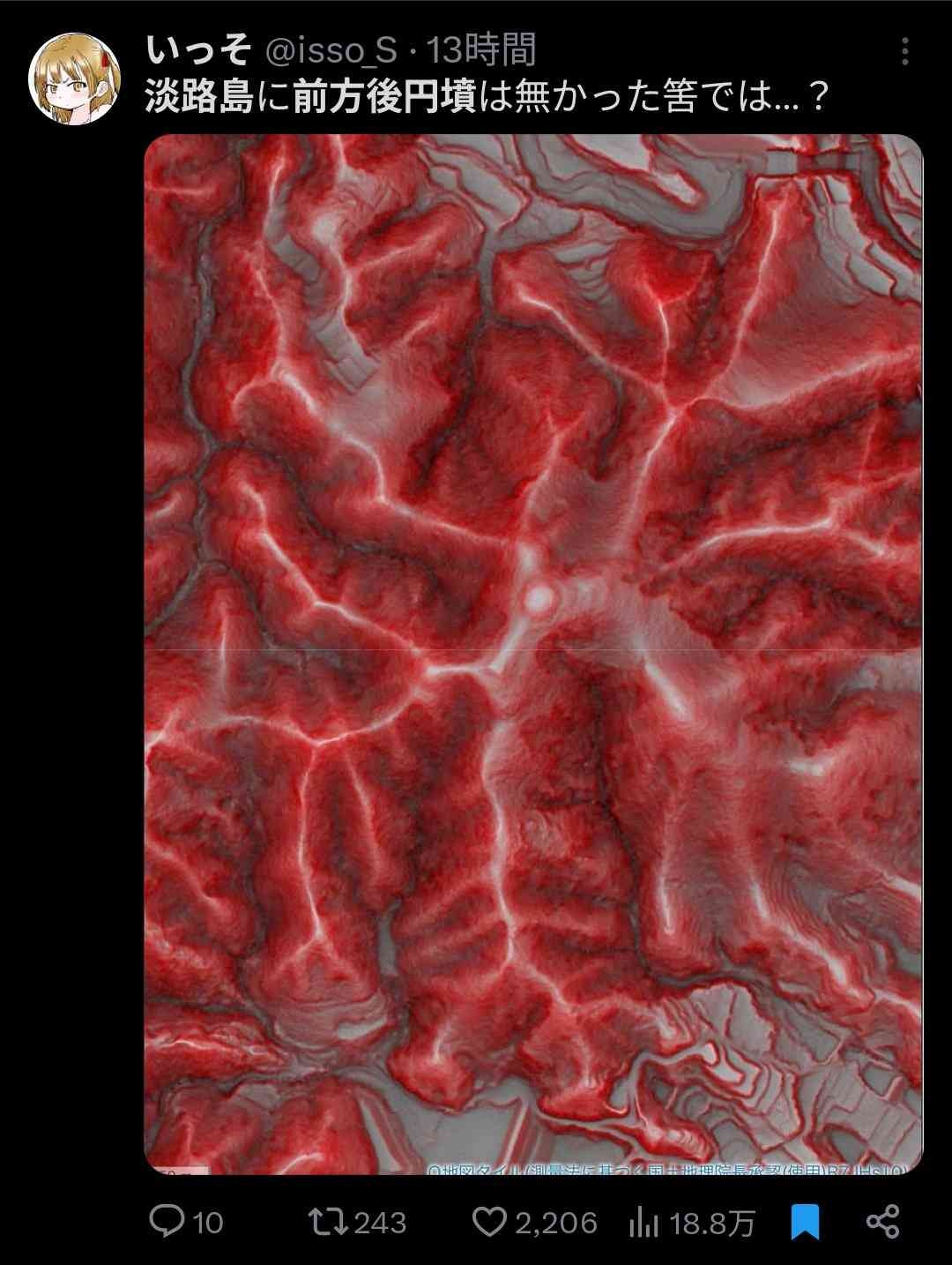【画像】淡路島で初の前方後円墳発見。ツイッタラーが歴史的発見