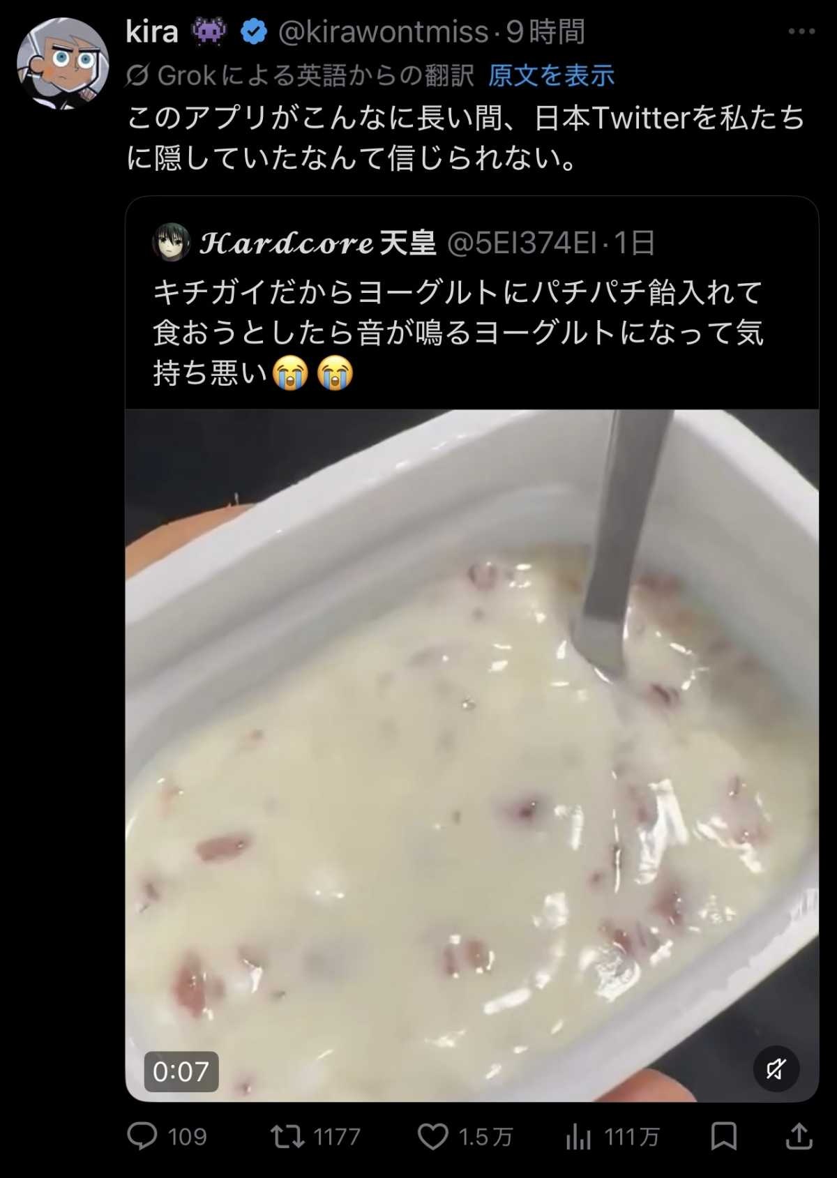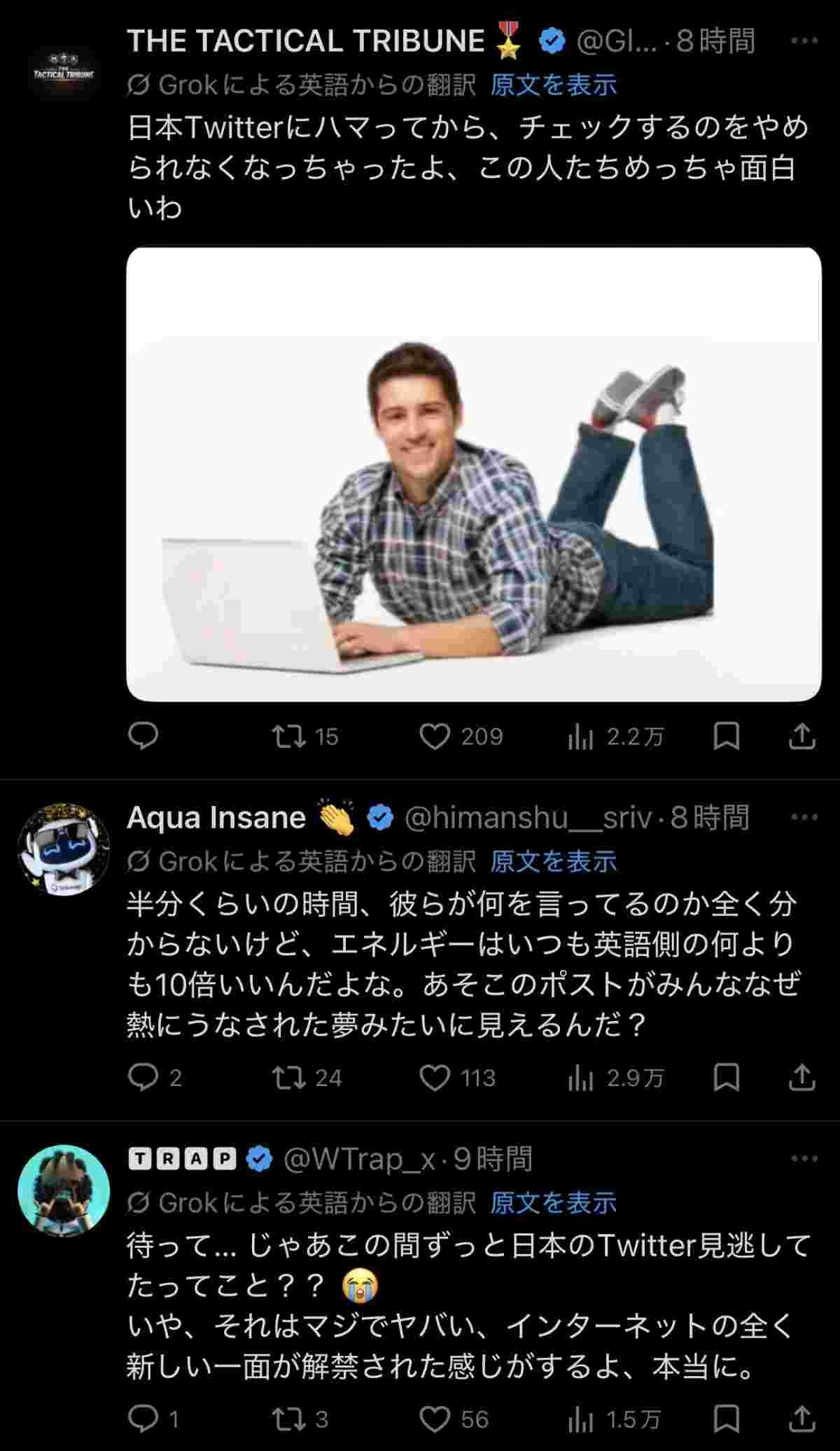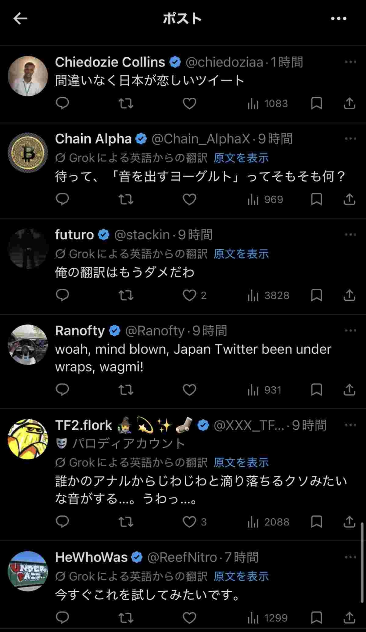 何か最近、イーロンマスクが日本語のツイートを勝手に英語圏の連中に自動で英語に翻訳する機能みたいなのを提供して、日本人のクソみたいなポストが全世界に反映されちゃうようになった - 57 : 2026/03/30(月) 22:50:00.60 ID:VOOfGWig0