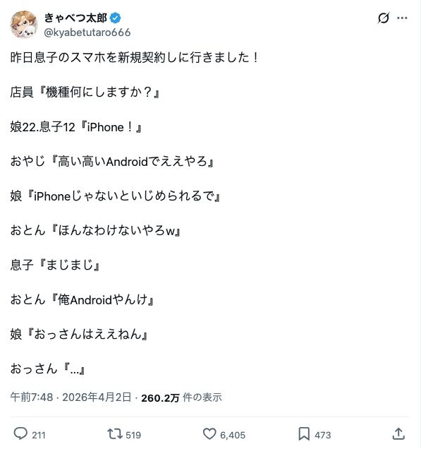 本当にiPhoneと同等なのは値段も同等だが - 33 : 2026/04/04(土) 07:06:23.08 ID:h6i4cxgb00404