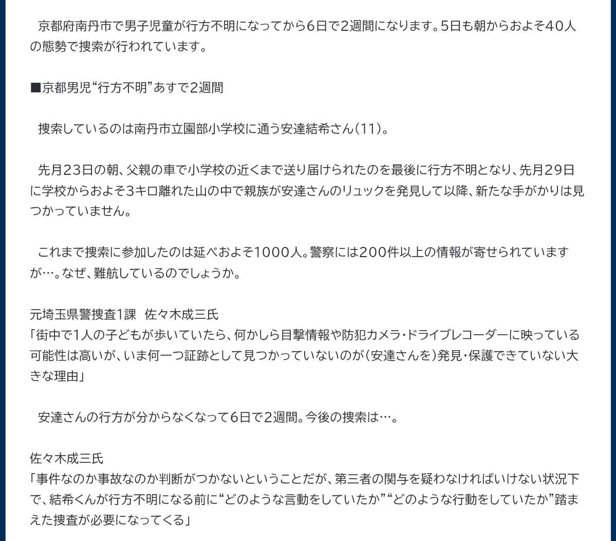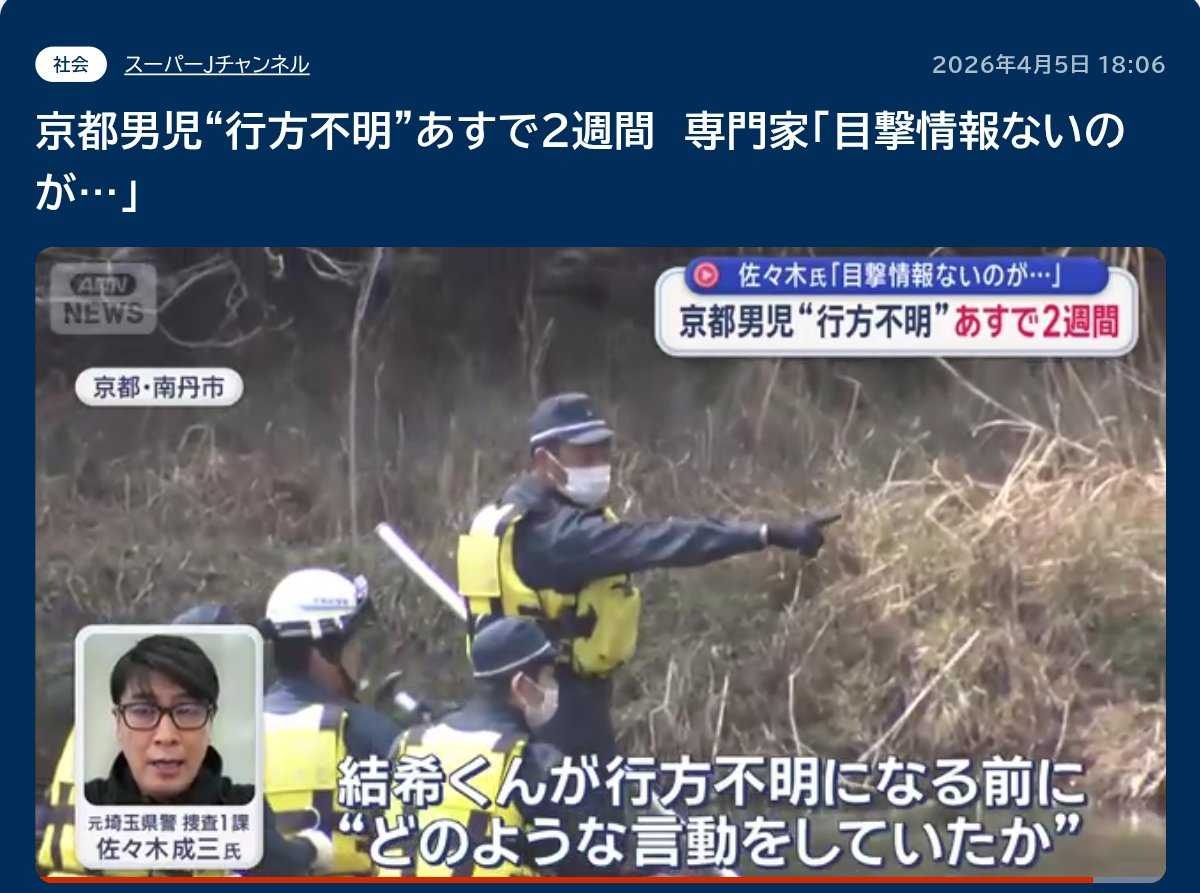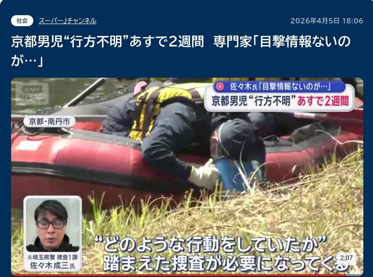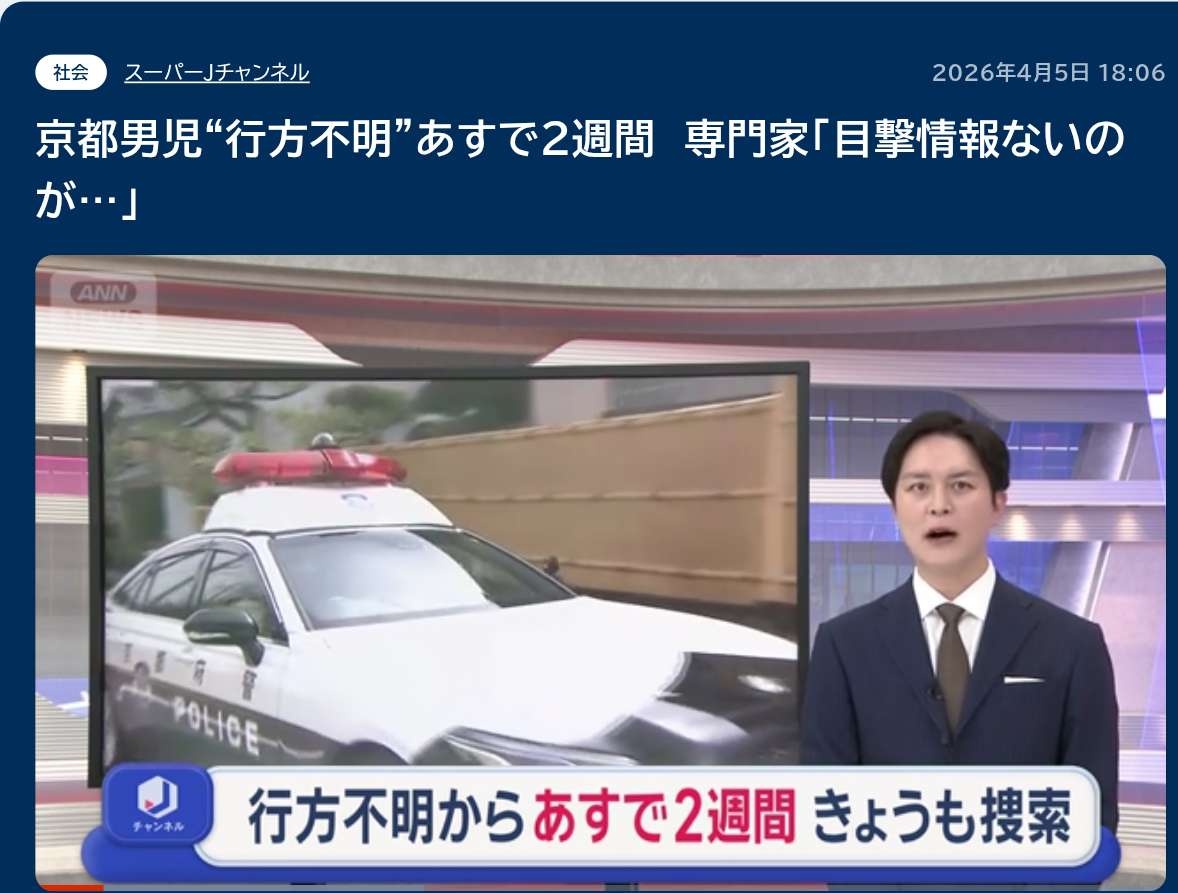 専門家「京都で行方不明になった小学生は防犯カメラやドラレコに全く映ってない。目撃情報すらない。自分で移動したなら必ず痕跡が出る」