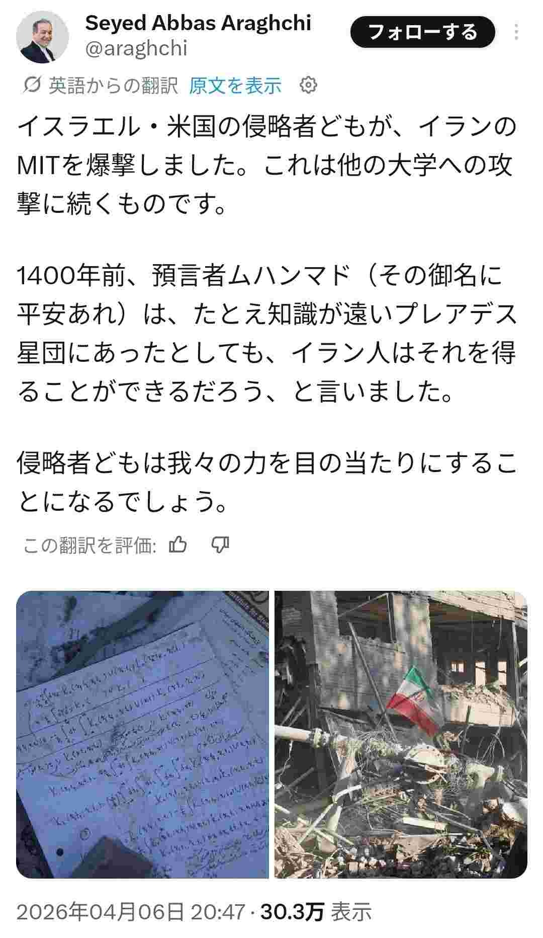 米イスラエル、イランのMITを爆撃!停戦交渉役のアラグチ外相が怒りのツイート