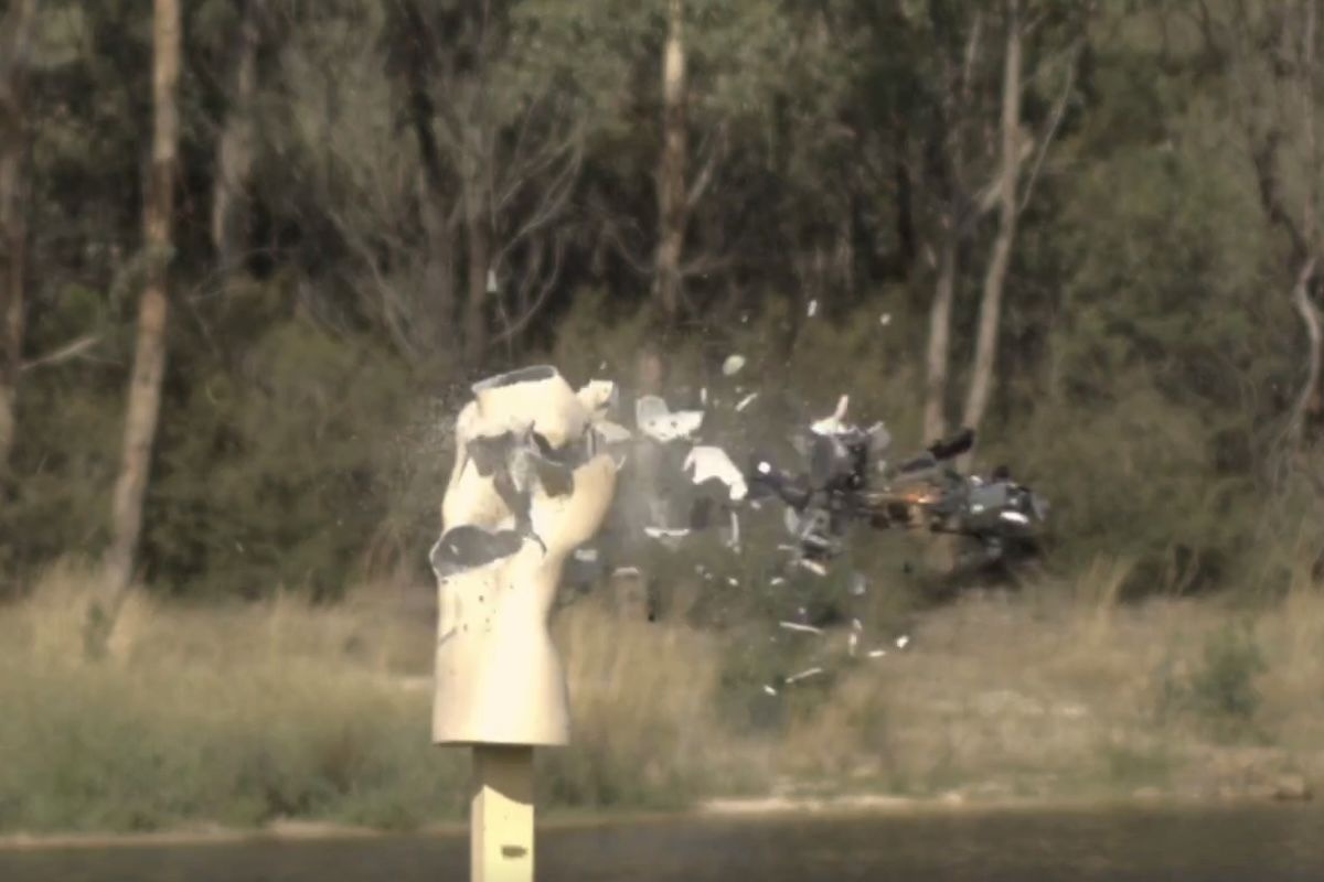 【画像】先端に刃を取り付けた「フライングソード(空飛ぶ剣)」と呼ばれる攻撃ドローン(無人機)が人形標的を貫く様子