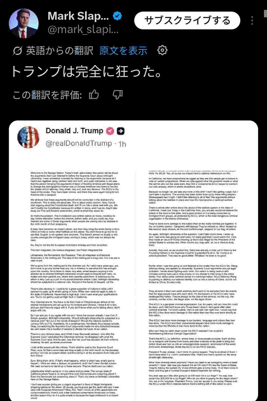 トランプさん、SNSに長文を連発して頭の心配をされてしまう😭