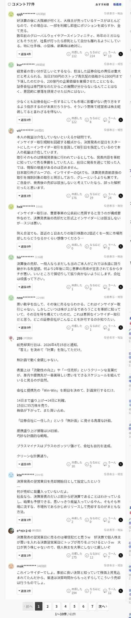 その株主を金ヅルと思ってるからこんな売り方を証券会社に依頼しても心が痛まないんだなとしか思えない