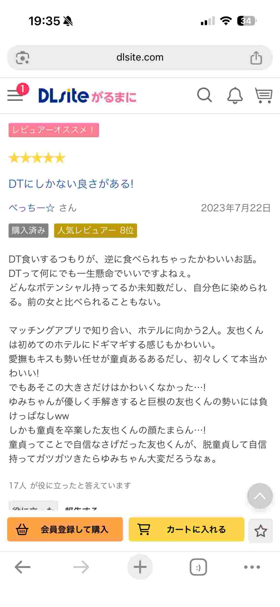女性向けDLsiteレビュー欄『童貞男子大好きです!!!』😲