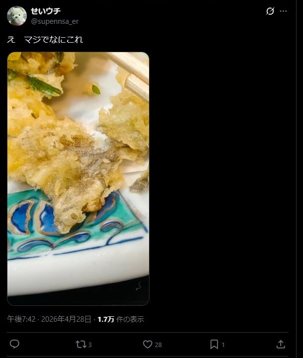- これコメント見たらおいしかったから、何の天ぷらだと思ってみたら気づいたって書いてあって本人食べたんだろうなw