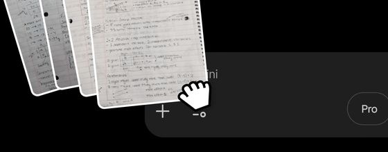 使用例を示したムービーでは、まず手書きのノートを撮影した画像をGeminiにアップロードしています。