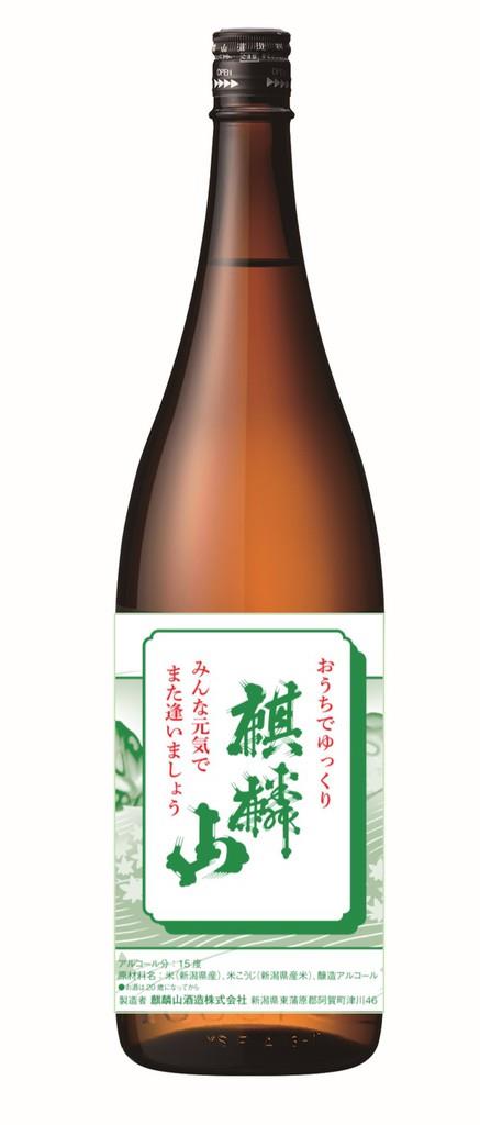 限定デザインラベルには「おうちでゆっくり 麒麟山 みんな元気でまた逢(あ)いましょう」というメッセージが記載されている。https://www.sankei.com/affairs/news/200427/afr2004270004-n1.html