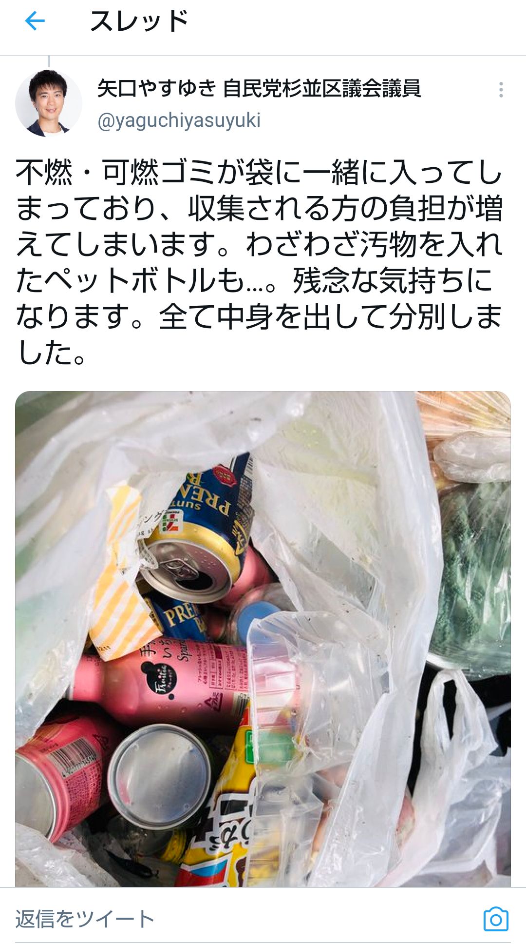 【画像】杉並区の自民党区議会議員、ゴミ袋を勝手に開けて「分別しろ!」とツイッターに掲載、ネトウヨ「外人の仕業!」と大激怒