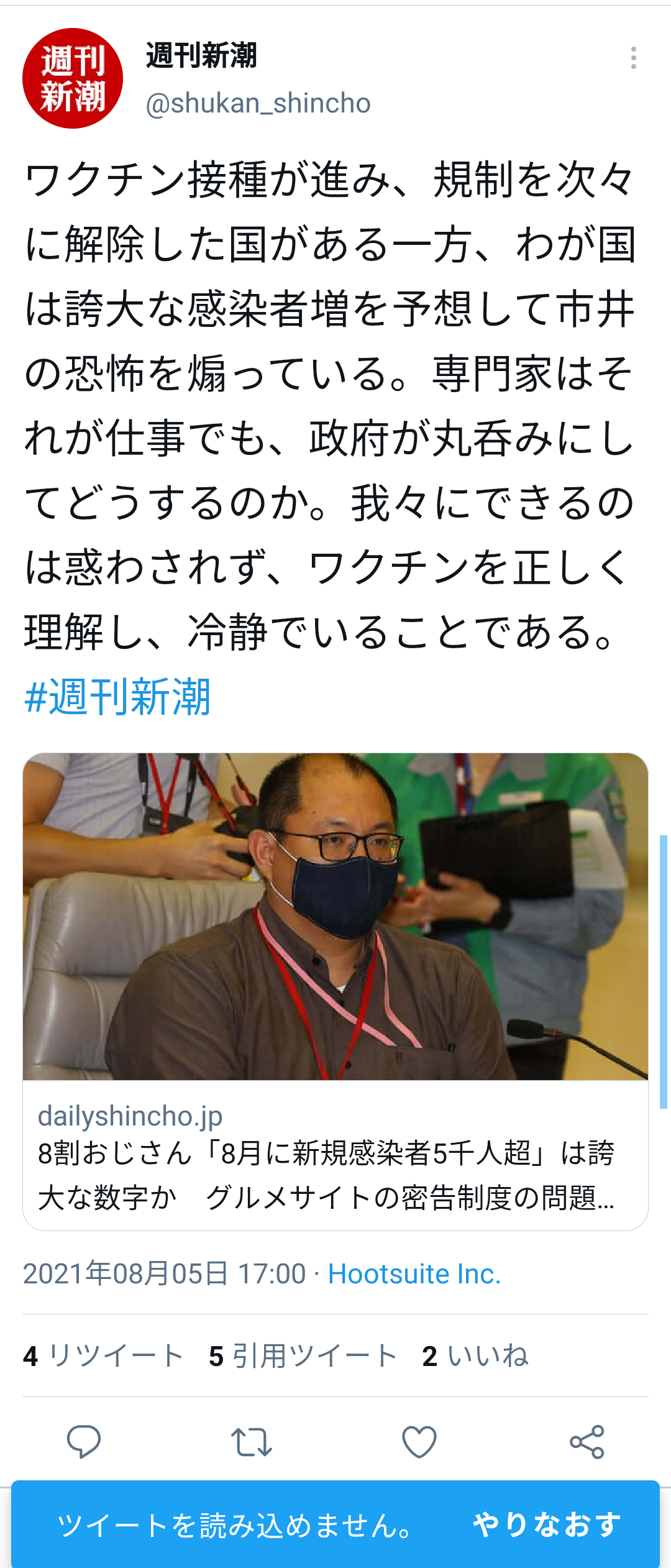西浦は今度は月末3万人とか言ってるから新潮は懲りずにそれでも記事にすればいいんじゃないかな