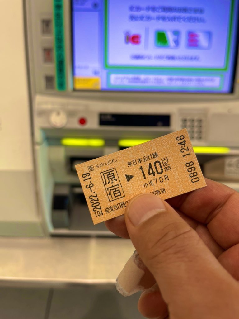 投稿では、原宿で購入した切符を公開。140円と記されており、初乗りの料金となっている。