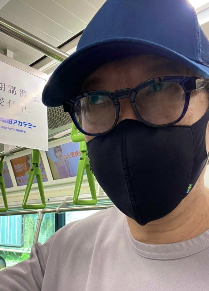 また、「緊張しますね」とも記し、帽子に眼鏡、マスクを着用し山手線に乗車する自身の姿を捉えた1枚も公開した。