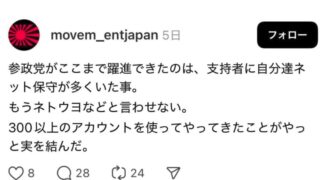 なんG参政党支持者さん、1人で300超のアカウントを使ってSNS工作していた模様www