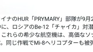 嫌儲ロシアの水上機、例によってドローンに着水中に爆破される
