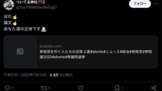 嫌儲【正論】参政党支持者「参政党を叩いてる人は暇空茜氏のツイートを見てメディアリテラシーを高めて欲しい😤」