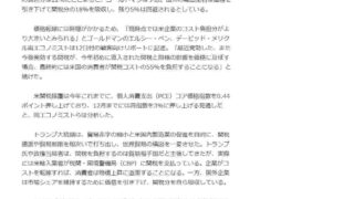 嫌儲トランプ関税、55%を米消費者が負担、年末PCEコア3%で利下げ停止へ