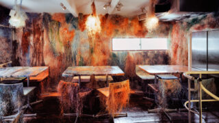 嫌儲【画像】隈研吾が2014年に内装をデザインした焼き鳥屋がこちら。LANケーブルをリサイクルした「モジャモジャ」がインパクト抜群